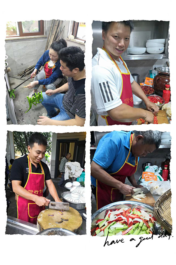 民以食為天,制作精美的菜肴,往往能夠給人帶來美好的享受、愉悅的心情。本次活動采取分工合作,共同制作拿手菜式。大家有序地洗菜、切菜、配菜、燒火、烹飪,通過所有成員的密切配合,各顯神通使出渾身解數,紛紛拿出自己的看家本領,有條不紊地展現自身技藝才能。經過小伙伴們的通力配合,一道道美食從靈巧的手里“脫穎而出”,色香味俱全。隨著一盤盤的食材不斷上桌,大家已經按捺不住心中的小騷動,減肥早已拋諸腦后,只想盡快享受這人間美味,數十種菜品,邊吃邊聊,顏值與味蕾齊飛,畫面十分溫馨。